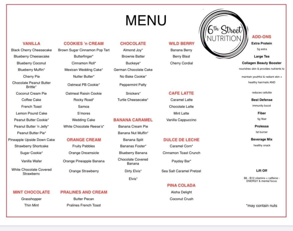 6th Street Nutrition Menu
